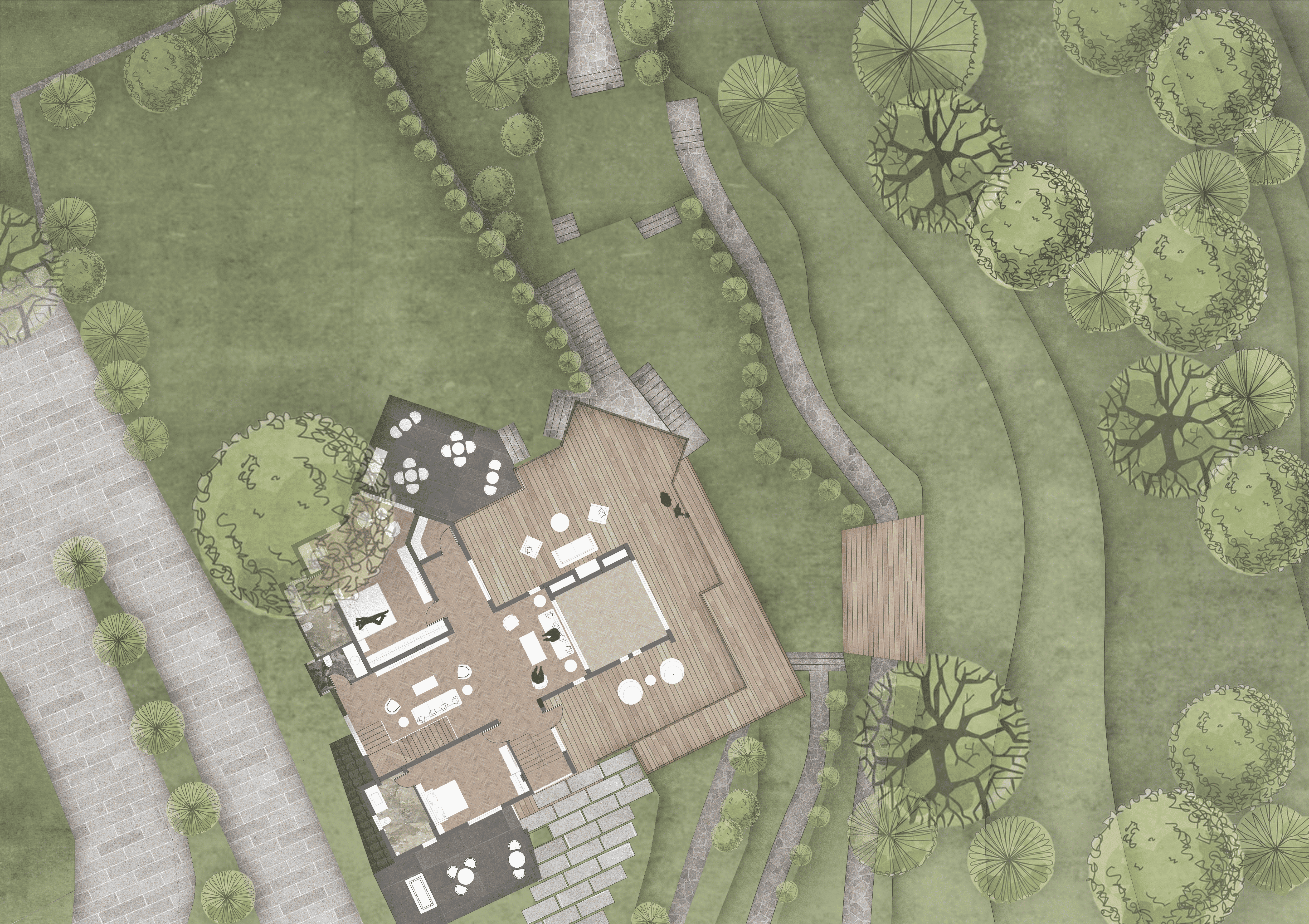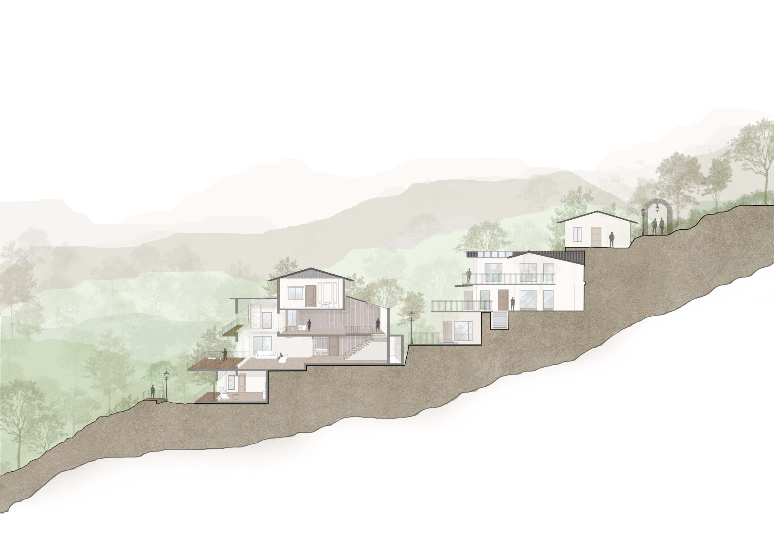 The lawns, green terraces and walking trails are an added bonus, which can be accessed by a series of footpaths & steps encouraging one to explore the site and connect with nature.